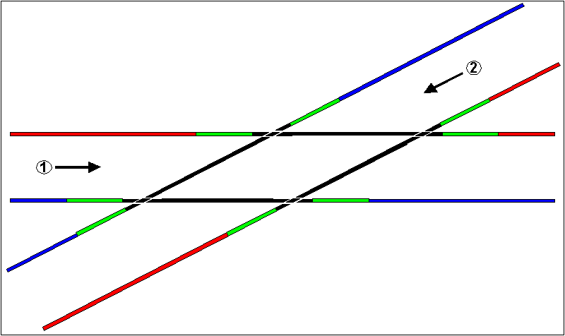 Ferde szembekeresztezések esetében - amennyiben a két irány azonos táplálási szakaszban